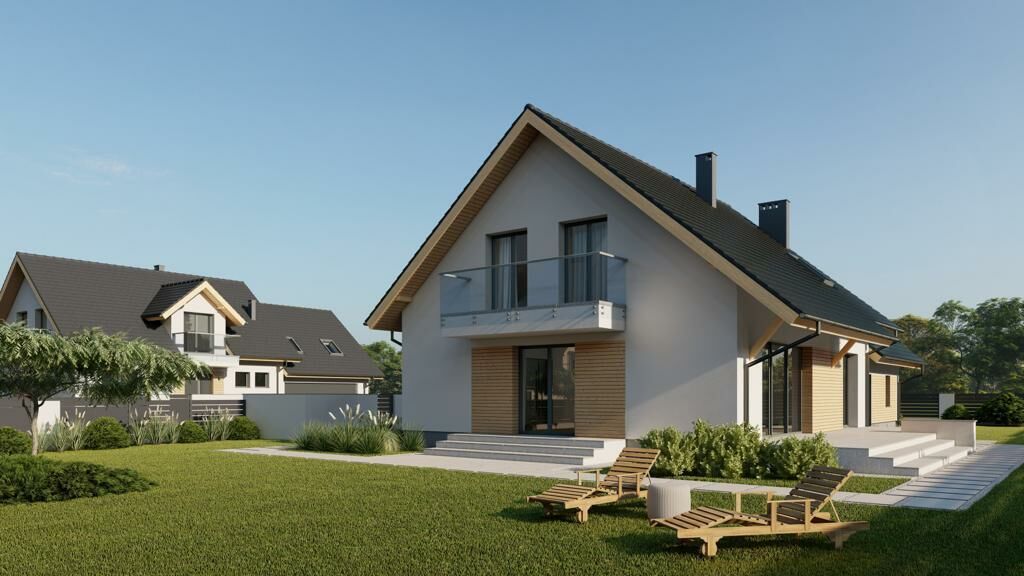 - Docelowo pięć wyjątkowych, wolnostojących domów na działkach o powierzchni od 900 do 1000 m, co zapewnia prywatność i przestrzeń.
